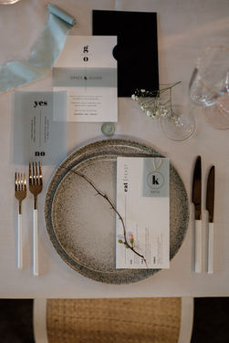The Larkspur combines the style and romanticism of beautiful typography whilst using soft textured card and modern vellum in a colour of your choice. Here shown in mint. Matching on the day stationery available.